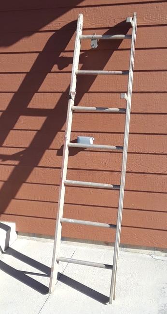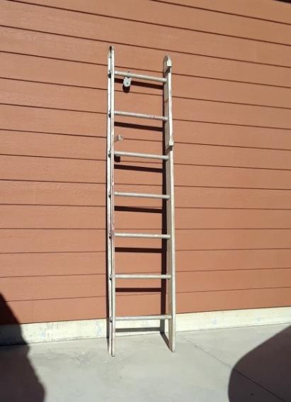 7½’ Aluminum Ladder - $20.00 Was part of a taller extension ladder, now just been using it as a 7½’ single section straight ladder. 20” wide. Works good. 7 – “D” shaped rungs with traction grooves.