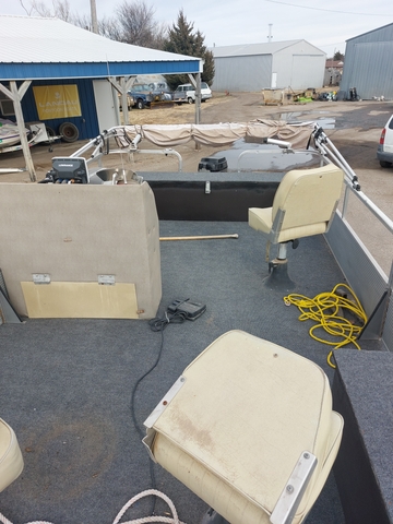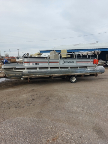 This is a 1987 20' Sweetwater pontoon with 50hp 2 stroke mercury outboard and custom trailer. The pontoon has the following equipment bimini sun top, rodlocker, pedestal fishing seats, lowrance fish locator, minnkota powerdrive trolling motor, rod holders, stereo, led trailer lights, anchor, oar, load guides and speedometer. Motor has been serviced and new water pump impeller installed. Runs great ready to hit the water. Everything works. You can reach me directly at 785-737-3460.