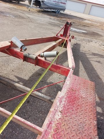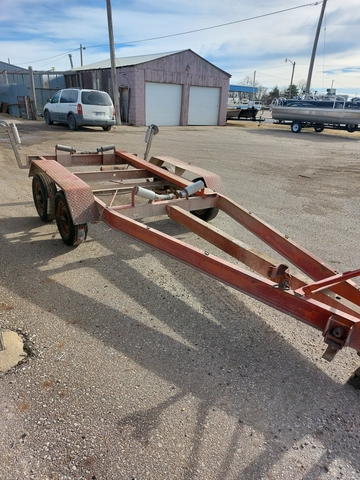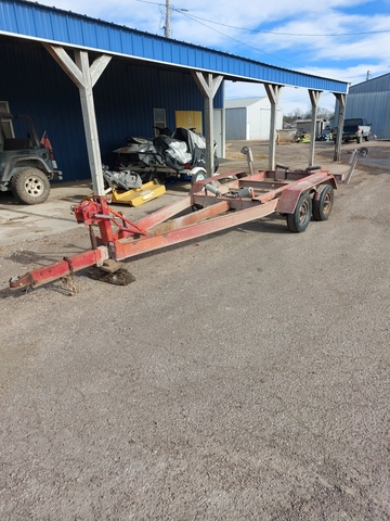 This is a 1968 Evinrude tandem axle channel frame boat trailer. Has new tires and bearings are in good shape. Would make a great flat bed trailer project. 2" ball hitch. Measurements in pictures. You can reach me directly at 785-737-3460.