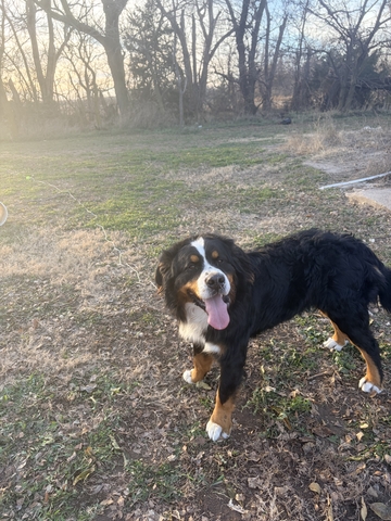 Selling our Bernese mountain dog. He is 2yrs old this month. Fully intact. Not aggressive towards kids, even our 3yr old boy plays with him. Very sweet and playful energetic dog...just likes to eat chickens which doesn't go well when you own chickens! Asking $600 can call or text at 3zero3-3eight5-7sicks87.