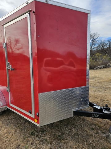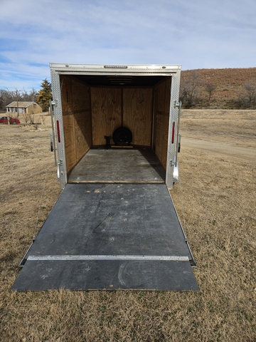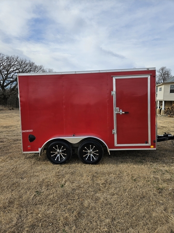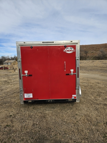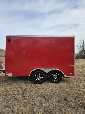 Super nice 2024 CargoMate 12' x 7' tandem axle trailer. This is a tall trailer with 6' 8" ceiling and has 18" wedge nose for extra storage. This trailer has tandem 3500 lb axles with brakes. Trailer is equipped with premium wheels, motorcycle chock, flow thru vents, LED lights, and a spare. This trailer is under 2000 lbs and can be towed in Kansas without a tag. Will sell with bill of sale for $4300 or with title for $4600. Call seven8five 483one7threeseven.