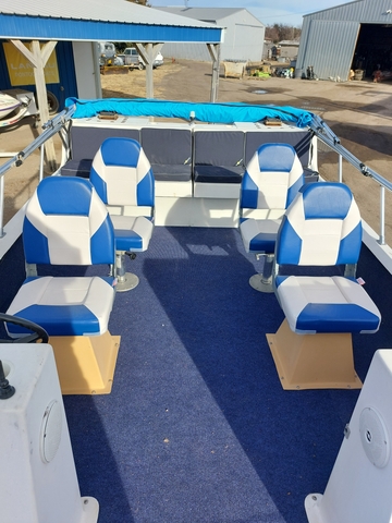 This is a 1989 20' Apache Seamaster fiberglass pontoon boat with 88hp johnson 2 stroke outboard and custom galvanized trailer. The pontoon has the following equipment livewell, new bimini sun top, new pedestal fishing seats, lowrance fish locator, Bluetooth stereo, down riggers, minnkota powerdrive trolling motor, new carpet, trim & tilt, load guides, rod holders, new led trailer lights and trailer ladder. Motor has just been tuned up and new water pump impeller installed. This fiberglass pontoon performs like a regular boat being able to pull skiers and tubers with no problem. You can reach me directly at 785-737-3460.