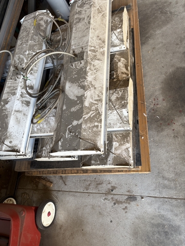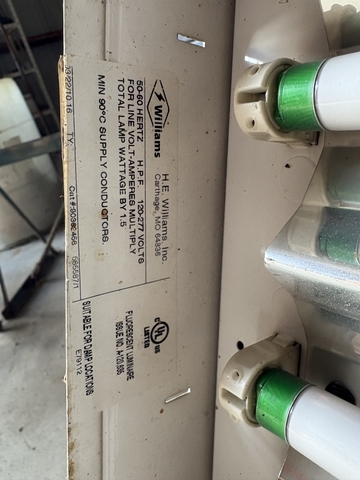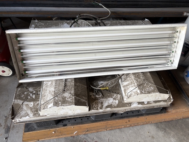 4' T5 fluorescent lights. Each fixture uses 4 bulbs. Worked when taken out of service. Comes with some bulbs. Can't guarantee all bulbs work. $10 EACH