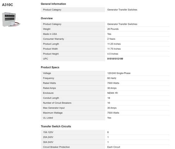 - 120/240-Volt 10-Circuit Pro/Tran 2 Transfer Switches - 310C
