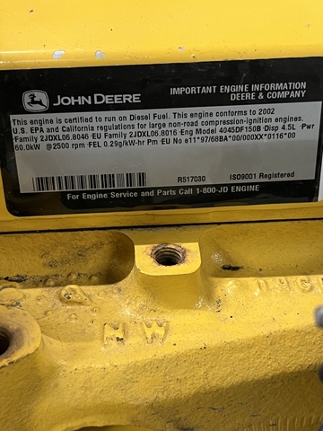 2002 year model 4045 John Deere power tech irrigation engine, 2,621 hours, removed from a Sullair air compressor that the air end failed and it was parted out. 60 kw or 80 hp at 2,500 rpm. Excellent condition. 12 volt electrical system. Variable speed mechanical fuel system. Includes the muffler and air cleaner. Has the correct flywheel and bell housing for a SAE #4 clutch. $6,000 in person plus sales tax or sign AG use. Scammers can get lost! Doug @ 620-382-683eight. Thanks for looking!