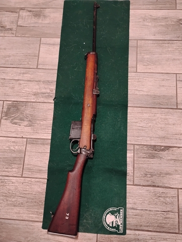 British 303 that I was made to believe it was a 308. Stamped on the side of the receiver very small says 308 Italy. However I'm unsure of the barrel that is on there because a 308 fits all the way flush in the chamber to where the extractor can't even grab it to pull it out. It is not a 303, it is not a 308, it's not a 7.62 x 54 and it's not a 410 nor is it 8mm mauser.