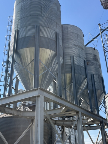 For sale is 3-1500 bushel bulk hopper bottoms bins on a steel frame. Bins are in great shape. Buyer is responsible for moving and transportation after purchase. Can call 785-282-5870 if you have any questions. Thanks!