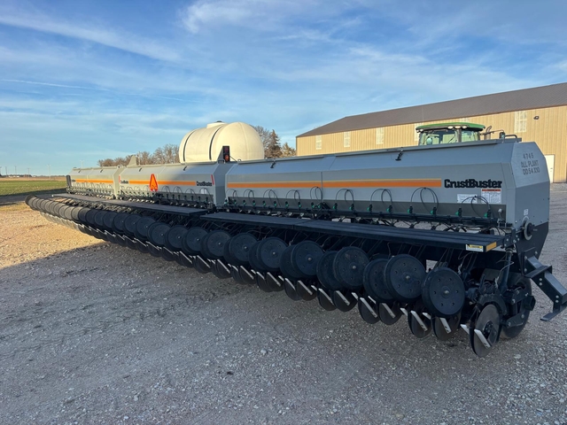 Crustbuster 4745 45' All plant No-till Drill, 10" row spacing, hydraulic drive, Sensor-1 seed sensor & monitor, 3 section shutoff, 2 pt. Hitch, liquid fertilizer with ground driven pump & 500 gal. tank, Good condition, always shedded. Moundridge, KS 620-386-0937