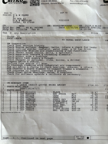 John Deere 9650 Walker Combine, 3249 Engine hrs, 2406 Seperator hrs, Duals, Straw Spreader, Single point hookup modified for newer models of header, *Went through winter inspection and service at Carrico Implement in December of 2024, see photos for work order* Always shedded. Price: $50,000