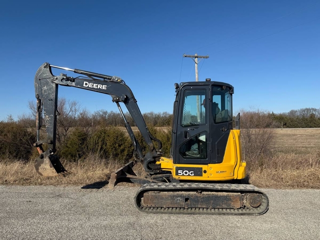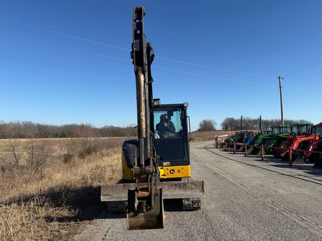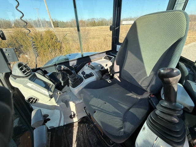 36 HP, 2-speed, rubber tracks, backfill blade, articulating boom, auxiliary hydraulics, 18" bucket with coupler, joystick controls with pattern changer. The enclosed cab has heat & air. This is a very nice, clean machine with 3,850 hours and ready to go right to work. 11,000# operating weight. Shipping is available anywhere in the United States. Please call us at 620-736-2038 for more information or to come look at it. Also, please visit our website at www.riggstractorcompany.com to view our current inventory.