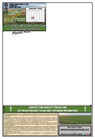 AUCTIONEER’SNOTE: Suzanne Bussen will sell 485± acres of Irrigated & Dryland atABSOLUTE PUBLIC AUCTION, on Tuesday, January 20, 2026 at the EventCenter in Sharon Springs, Kansas.