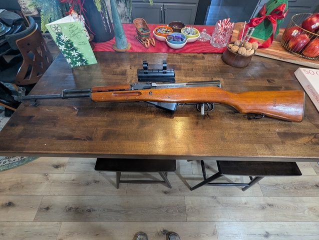This is an absolutely amazing SKS all serial numbers match except for the Bolt Cover. There is no bayonet with it. It appears to have a very low round count or possibly unfired. Included is a B-Square scope base and rings and 3-9x32 Simmons scope. Most sites list for $525 to $750. Asking $475 OBO. I will consider all trades but looking for a Savage 340, or Stevens 325 or variable power Burris or Leupold handgun scope.