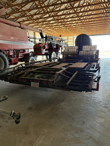 Sprayer Trailer with 1,300 gallon water tank, was originally a combine trailer. 40 feet long, 17.5 rubber, air brakes, have been hauling a 720 Apache, good heavy trailer. 785-798-5262 PHONE CALLS ONLY!!