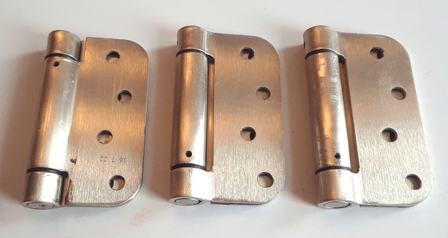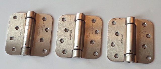 3 Heavy Duty Hinges - $8.00 Selling 3 (NEW) 4” heavy duty steel door hinges. Brushed nickel finish with screws.