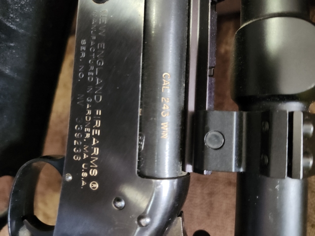 I have a New England Firearms Handi Rifle in. 243. It has a heavy barrel and it's very accurate. It comes with a Bone Collector 3X9 BDC scope. It shoots better than I can. Buyer to pick up in Hoxie.