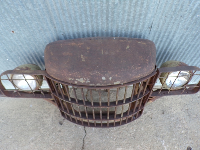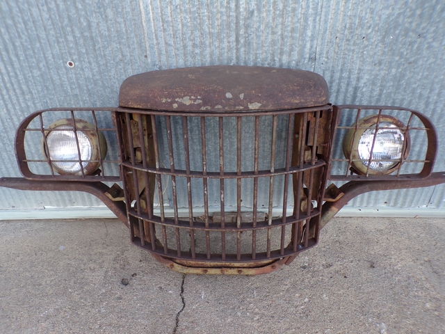 Old early 1940s Dodge military truck (pre - power wagon) grille assembly with headlights. Great looking wall hanger inside or outside your shop or yard art. Call 6206176644 - emails & texts are usually ignored as a scam.