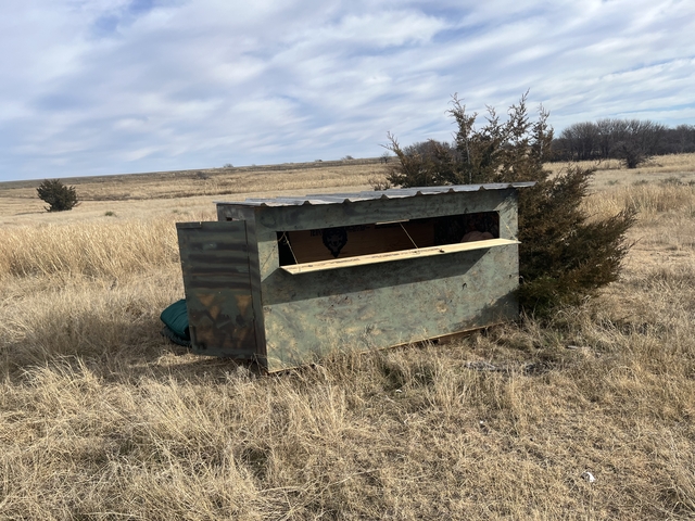 This is the hunting blind you've been looking for! Fits perfectly in the bed of your truck. It's sitting on pallets so you can load it easily. You put a little heater in there and it is comfortable. You can set up 3 to 4 chairs beside each other and still all be able to see out. It's 4 feet wide so you can lay down in a sleeping bag for a night pretty comfortably. I have green and red battery powered lights with a remote so you can have lights on and most animals won't be able to see it. If you're interested, text me at 620-295-044four i'm asking $2000 and it's worth it because you can take your wife hunting and she won't even complain but I'm always open to offers. Have a good day.