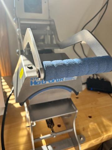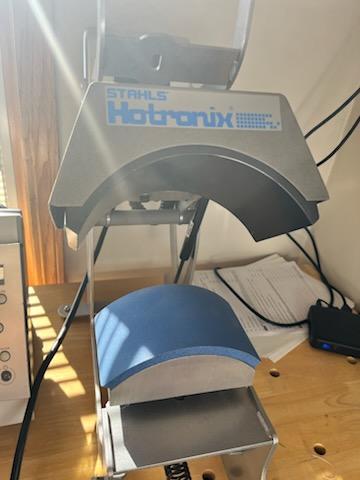 Hat press Great for Christmas if you know anyone wanting to get into hats. $400 used on one hat. Heavy duty bought from Stahls. Comes with two different size platelets. Auto open.