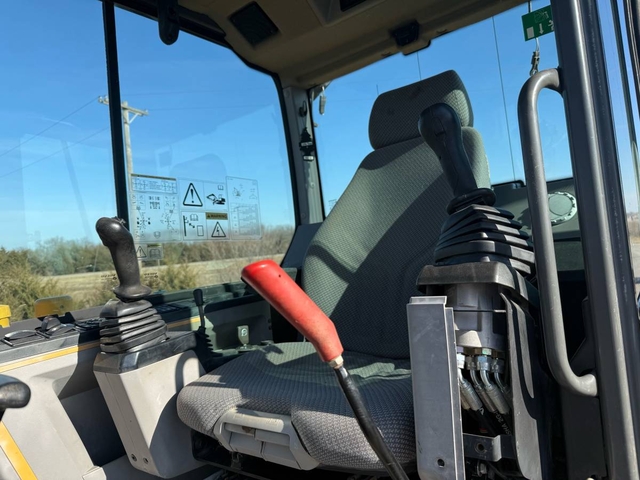 59 HP, 2-speed, articulating boom, backfill blade, 24" bucket with hydraulic thumb & hydraulic coupler. The enclosed cab has heat & air (AC belt is missing). 15,400# operating weight. This is a nice machine with 2014 hours. Shipping is available anywhere in the United States. Please call us at 620-736-2038 for more information or to come look at it. Also, please visit our website at www.riggstractorcompany.com to view our current inventory.