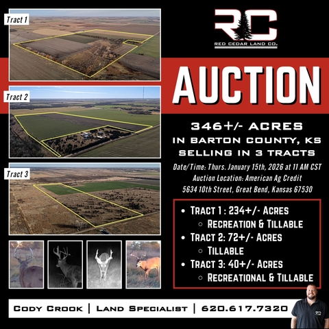 AUCTION! 3 Tracts of Recreational & Tillable Land in Barton County, KS
