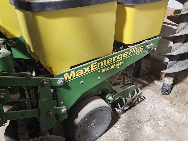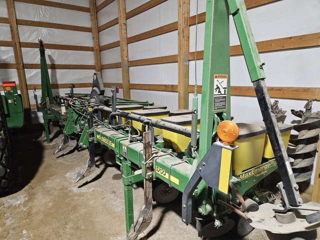 2002 John Deere 1700 max emerge plus 8 row 30 planter, precision seed meters, schlagel closing wheels, markers, 250 monitor, custom made box tarp, shedded, very minimal acres the last 15 years.