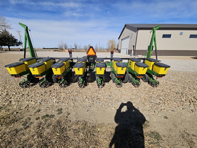 2002 John Deere 1700 max emerge plus 8 row 30 planter, precision seed meters, schlagel closing wheels, markers, row cleaners, heavy down preassure springs, 250 monitor, custom made box tarp, shedded, very minimal acres the last 15 years.