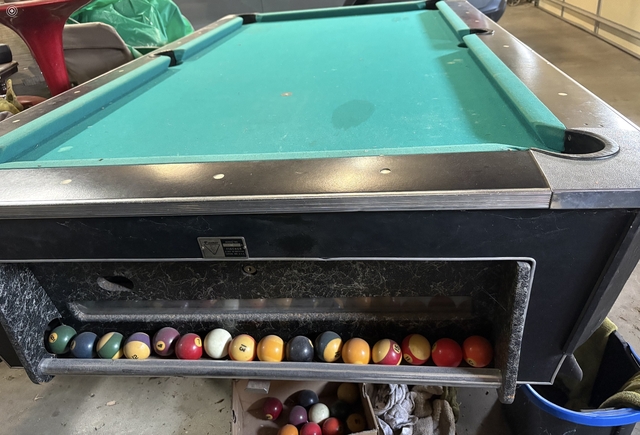 Fischer pool table, comes with pool balls, rack, cues and cue rack. Bonus book included. Serious inquiries only. Heavy item, buyer responsible for moving. $250 cash.