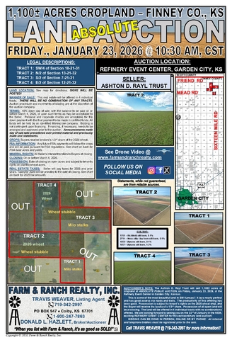 Don’t miss the opportunity to purchase this offering being sold by the Ashton D. Rayl Trust: 1,100± CROPLAND ACRES, SELLING IN 4 TRACTS!
