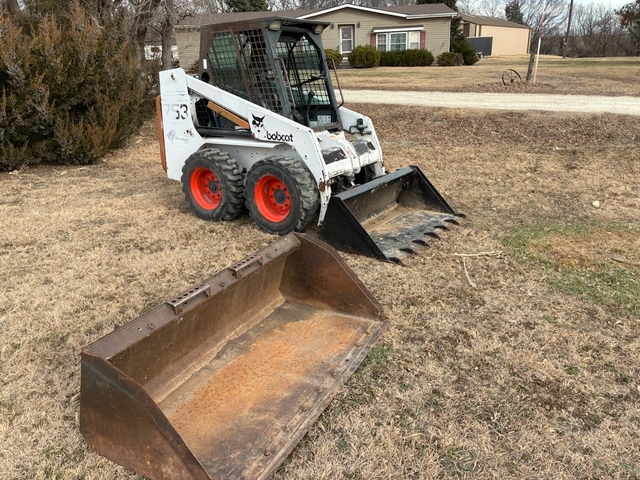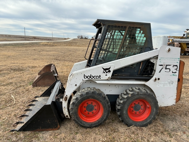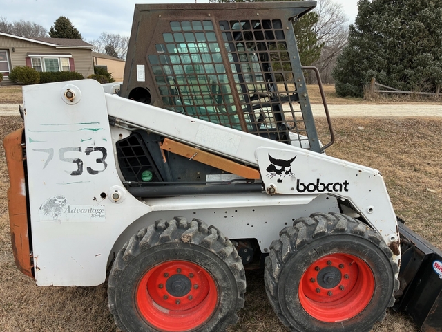 753 Bob Cat skid loader. Cab, heat. Good smooth bucket plus new tooth bucket. 3768 hours. Good rubber. Serviced. Good running machine. Call 785-282-5320 No texts please.