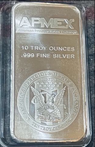I have for sale an APMEX 10 troy ounce silver bar with .999 purity. It also comes with a protective case. Price is less than spot, but may change less or more according to the spot price, but shouldn't move very much.