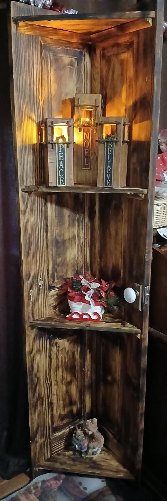 Handmade beautiful corner shelf items on shelf was display only. must pick up in Russell ks