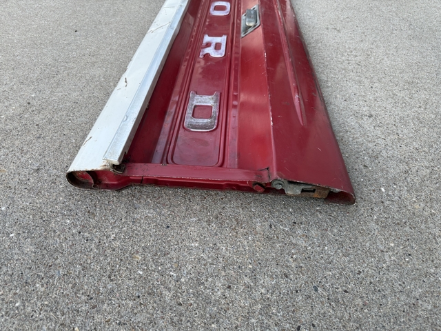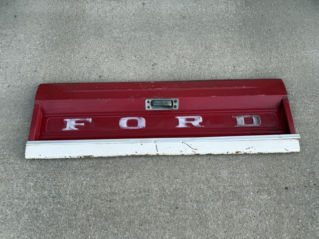 For Sale: I have a Ford Pickup tailgate. Tailgate is in very good condition for it's age. I bought it to make a tailgate bench. But, after spending a little more time checking it out, it is just in too good of condition to turn it into a bench. This tailgate needs to go back on a pickup. I am not a Ford guy so it needs to go to someone that is! I have been told that it is from a 1960s something pickup, but I'll leave that detail up to the Ford experts!