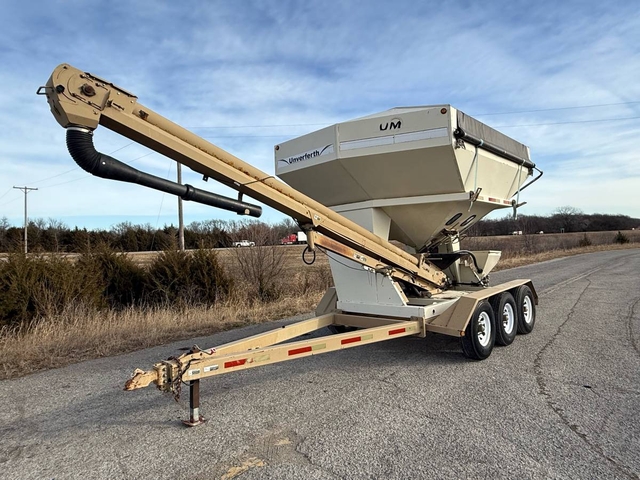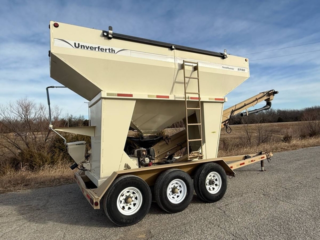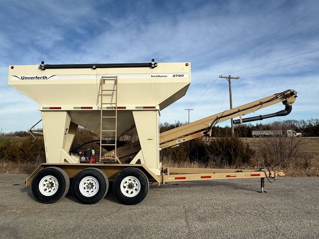 375 bushel, 2 compartments, roll-over tarp and hydraulic raise conveyer. This seed tender has a Honda electric start motor, treatment hopper with auger, triple axle with brakes on all 3 axles and 2 5/16 ball hitch. This is a nice tender with good tires and is ready to work. Shipping is available anywhere in the United States. Please call us at 620-736-2038 for more information or to come look at it. Also, please visit our website at www.riggstractorcompany.com to view our current inventory.