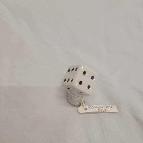 Vintage porcelain or ceramic dice knob. It was used for the head ,or handle of a walking stick or cane. circa 1930's - 1950's