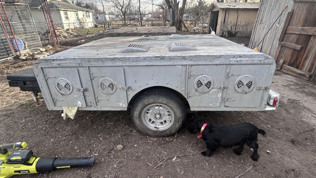 Home made 8 hole dog trailer. Has title. Nice for getting from kennel to training ground or any short haul. Spacious holes; It Hauled labs for years before i owned it. Good trailer just no longer needed bc work got me a new one.