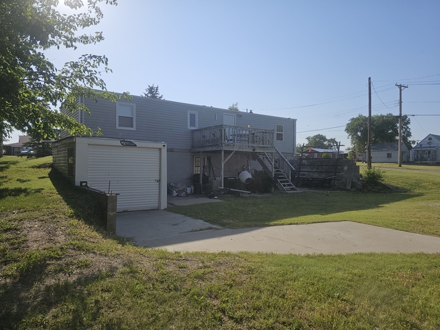 Doublewide mobile home with many improvements. Newer siding and windows. 1 full bath kitchen and 2 bedrooms. Full basement with bathroom and kitchen. Still needs some more. Some new floors and walls. Painted some rooms. Has an attached small building with roll up garage door, lighting and outlets. Enclosed Woodside building with side entrance door. Lights and several outlets. Small storage attached to the backside. Nice neighborhood. Close to Casey's and grocery store. Bought newer home and have many items stored in this home yet. Bedroom sets. beds and more furniture that could be included for right price. Sold as is with exception of clearing out the rest of our items. 1968 doublewide set on a walkout basement.