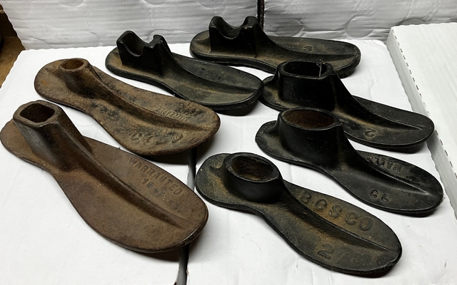 As shown, 7 Lasts in 4 sizes and 2 stands. One stand is 16" tall and one is about 10" tall. Price is for all pieces.