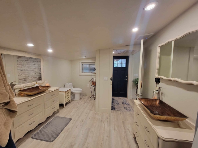 Two Separate Vanities with Mirrors & Glass Sink Bowls