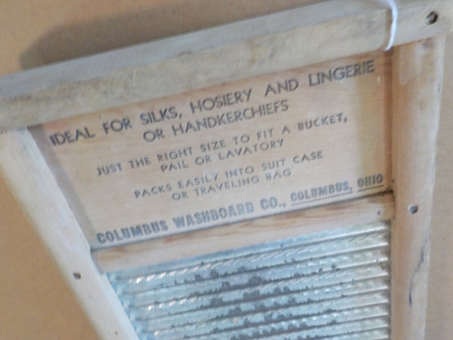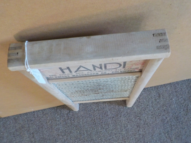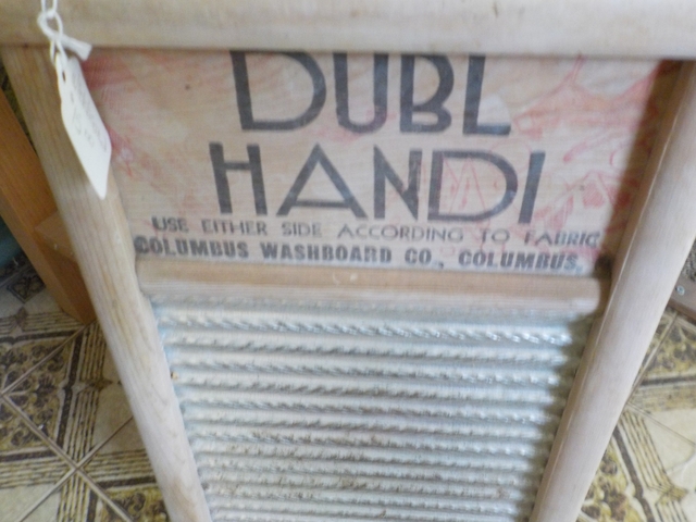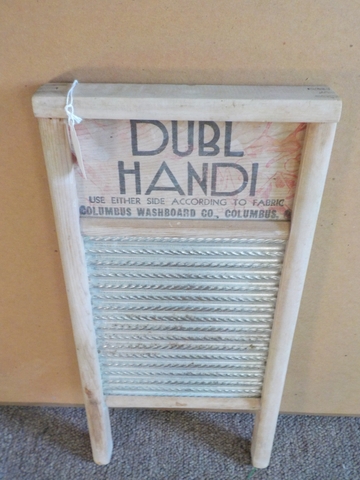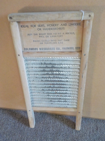 The primitive washboard/ laundry scrubber is a used item. The washing part is tin with a scrub panel edge, back side is made of two pieces of wood and a wood frame. It can be used for a laundry or kitchen decoration. It is marked "National Washboard Co." No.442 Made USA Chicago-Saginaw-Memphis. The graphics are in great reading shape. No cracks or breaks but some wear in wood. Excellent condition. Measures approx. 18" tall x 8.5" wide x 1" deep. CASH ONLY - $15.00. If you are interested/questions please message me. Arrangements for pick up will be made at the time of sale. It is located in Plainville.