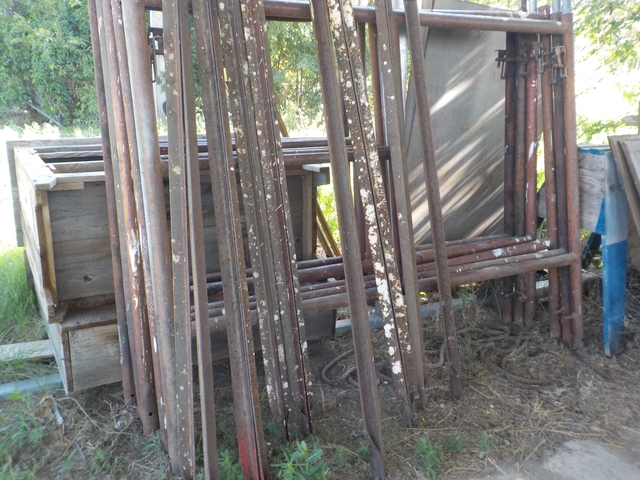 A scaffold set up is a great addition when doing painting, masonry, remodeling, facade work, set up for storage and more. The USED stackable scaffold set includes 6 -rung frames and cross braces. The standard frames are 5’W X 7’D X 5’H each. A few coupling pin connectors are included. Easy break down for storage.