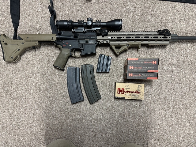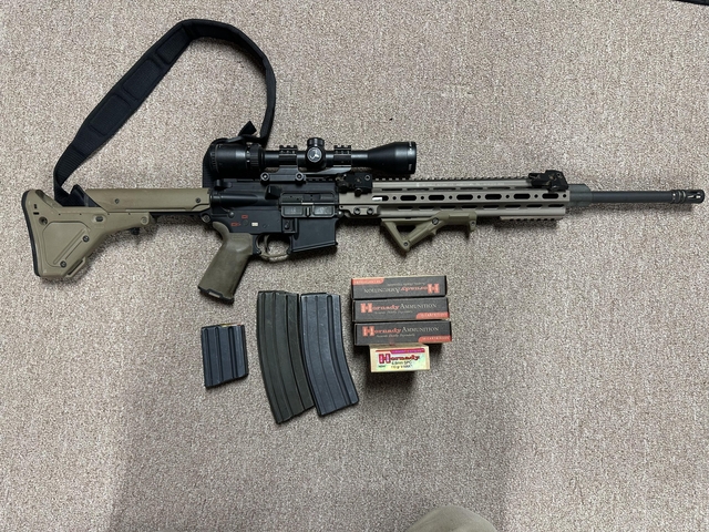 Custom spikes tactical lower receiver with a Geissele handgrip.