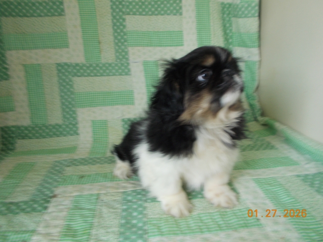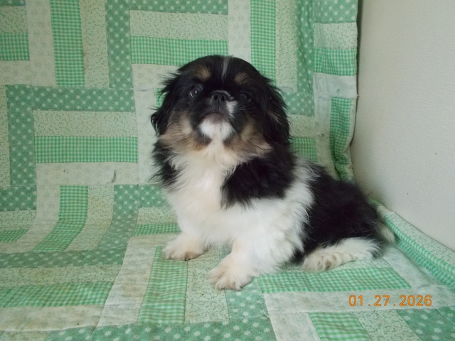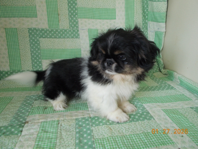 This sweet baby is 3 mo old looking for a forever home he has vaccines given and dewormed 2 times have registery paper come with puppy pack to get him started potty pad trained very spoiled loving little ones Boy black n white tan parti born 10-24-25 ONLY SERIOUS INQUIERS PLEASE 785-569-1186