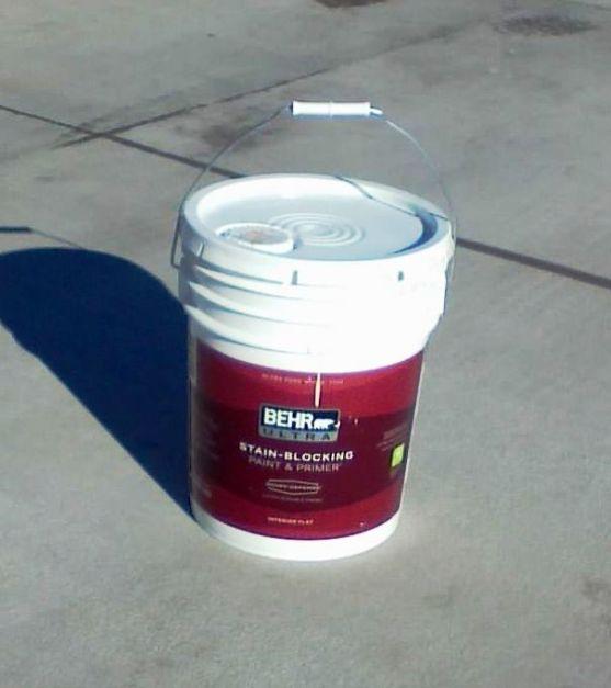 2 ½ gallons of Behr Ultra Scuff Defense Interior Flat Paint - $30.00 The color is called Roman Plaster & it is a warm tone beige/tan color reminiscent of ancient Roman sculptures. The 5 gallon bucket is over half full.
