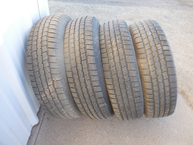 Set of 4 ST235/80R16 10 ply trailer tires with less than 1,000 miles on them, they are $120 new plus tax at Walmart, asking $45 each OBO. Call 620-646-6041.