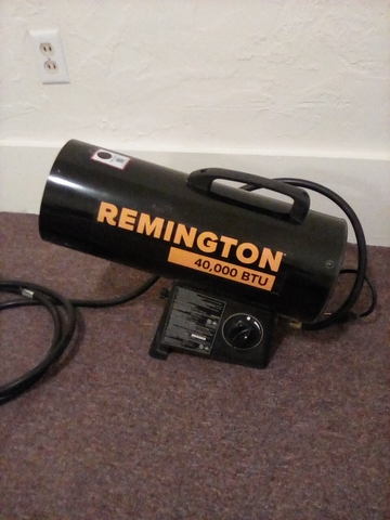 Remington 40,000 BTU Propane Air heater $80. Cost me over $140. new, used very little but works fine and got my job done. I don't need it any more but it will make a great heater for a shop or work space this winter. Take advantage of this low price to go. Call for further information at 785-443-8574 NO TEXT PLEASE WOULD NOT RESPOND.