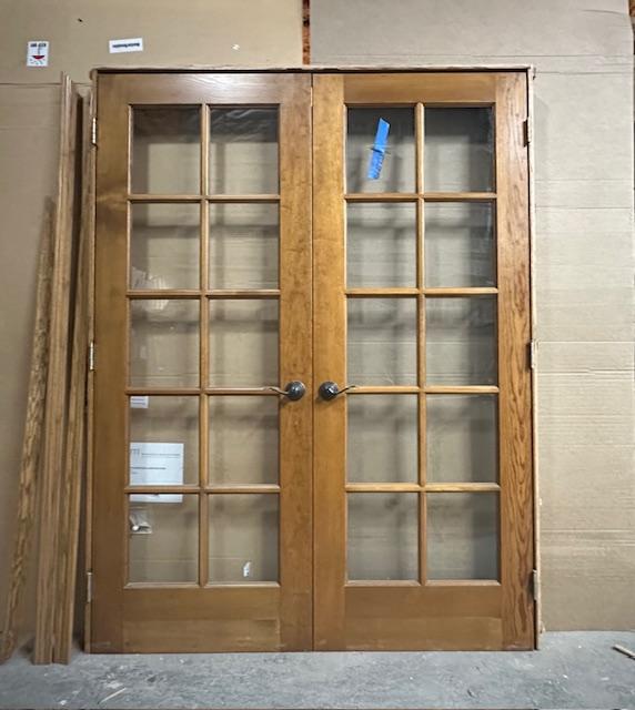 Beautiful interior double french doors for sale. 5'-0" x 6'-8" pine doors with oak jamb and one set oak casing. Updated our conference room and no longer need. If interested, or would like to view, please call 785-625-8220.