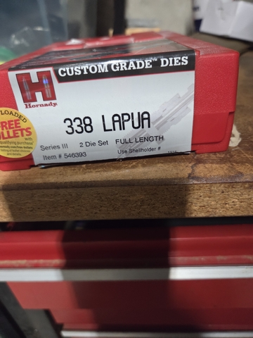 I received this material through a trade, and have no use for it. 1 Lee Reloading Die Set for 338 Lapua, part number 546393