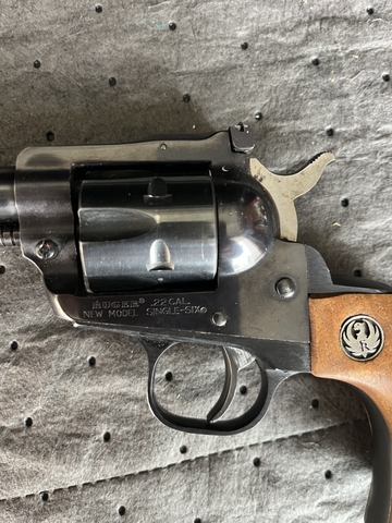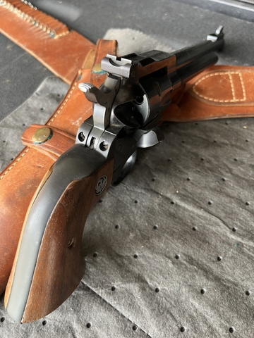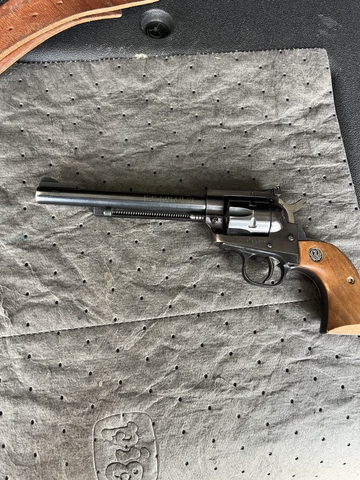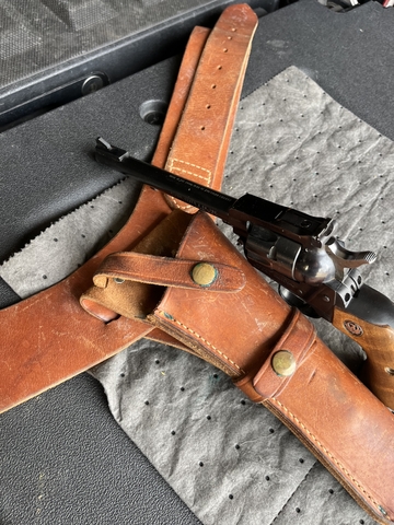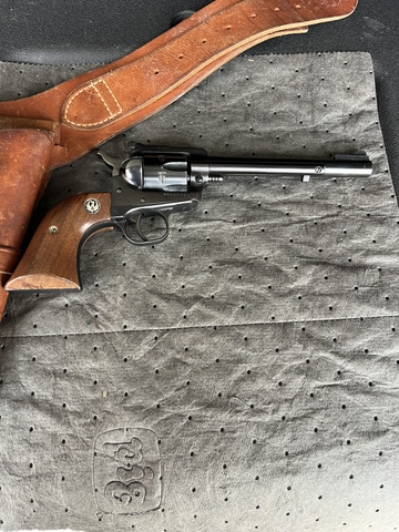 *Ruger new model single six, 22LR #64-89884, 6” barrel, manufactured 1976, with holster/belt, $600.