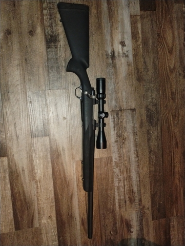 M77 hawkeye, 20" heavy barrel, hogue stock, 2009 model. Was going to turn into a thermal gun but cant bring myself to thread the barrel. Consider trades for ak-47, ar 10 in .243/.308,.45-70 lever gun, harley sportster? 950 cash