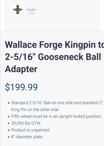 I bought this and never used it and i don't own a semi anymore so I see no point in keeping it. It is a Wallace adapter. It has a 30,000 lb rating. Made in USA.